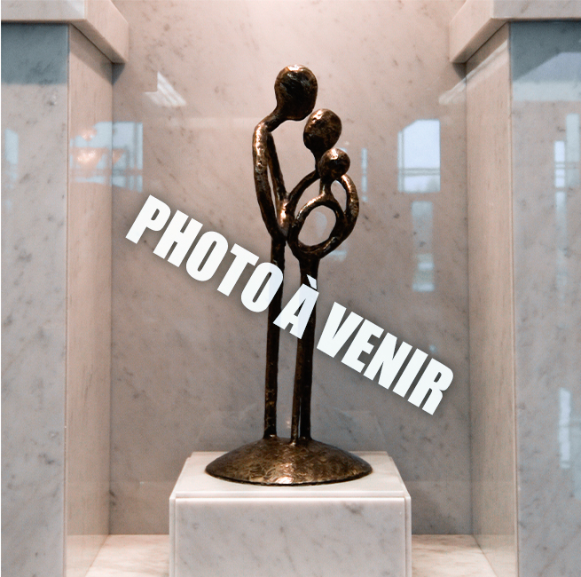C'est par un lundi matin que Louis-René trouve par hasard ce qui deviendra le logo officiel du Parc commémoratif Chaudière-Appalaches. En effet, une exposition d'œuvres d'art avait lieu au centre culturel Marie-Fitzbach à Saint-Georges et le coup de coeur suscité en voyant la sculpture de Lewis Pagé a fait en sorte que Louis-René savait qu'il avait trouvé. Cette sculpture, acquise lors du symposium de Saint-Georges en 1997, est intitulée "une affaire de famille". Ce thème, choisi par l'artiste Lewis Pagé, a deux significations extrêmement importantes pour Louis-René et sa famille. On y retrouve en premier lieu, la signification de l'entreprise familiale : La maison Roy & Giguère inc., qui opère le mausolée du Parc commémoratif Chaudière-Appalaches, est une entreprise funéraire dirigée depuis quatre générations par la même famille. Le deuxième élément que représente la sculpture et non le moindre, est que tous les membres d'une même famille peuvent se retrouver au Parc commémoratif Chaudière-Appalaches malgré un choix de dernier lieu de repos différent, car il offre tous les choix de disposition final : lots au cimetière, habitacles au columbarium et cryptes dans le mausolée. Cette sculpture symbolique peut également être retrouvée à l'intérieur du complexe, car deux répliques coulés dans le bronze se trouvent au columbariumdans la chapelle pour symboliser le caractère sacré de la famille. Il s'agit des dernières œuvres réalisées par Monsieur Lewis Pagé avant son décès et pour nous, c'est avec fierté que nous exposons ses dernières œuvres si symboliques à nos yeux.